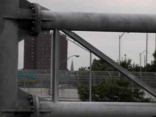 Beside a tower of the Brewster Projects, you can clearly see the spire of St. Josaphat.