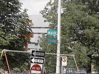 We've reached the corner of Mack and Chrysler (Hastings St).